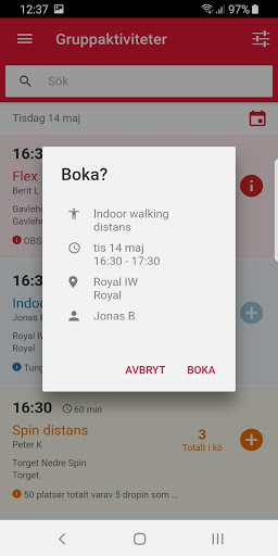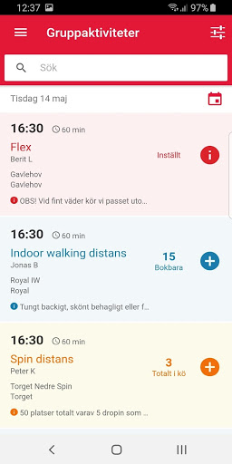 - Se alla bokningsbara pass och bokningsläge på dem.