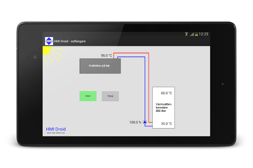 HMI Droid is an evolution of the HMI program LEDpanel for Windows and is a supplement or alternative to traditional SCADA systems and operator panels. It handles logical and numerical variables and has easy navigation between panels (pages) using swipe gesture or with buttons.