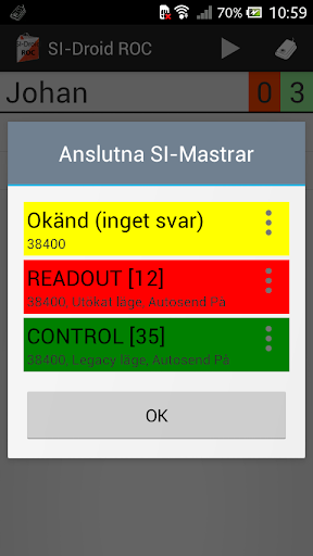 För att kommunikationen med SI-mastern ska fungera så måste telefonen ha stöd för USB-OTG. På hemsidan http://www.joja.se finns info samlad om vilka enheter som har testats och fungerar med USB-OTG.