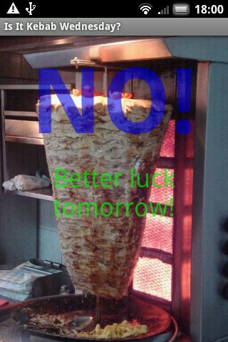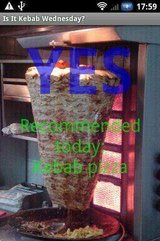 If it's Wednesday then it's also time for kebab. This application will come in handy to let you know if it's Wednesday or not. When the big day arrives a recommendation of what kind of Kebab will be presented.