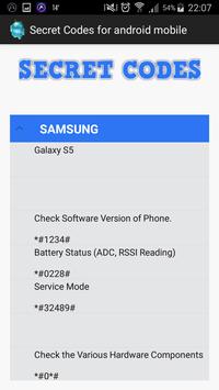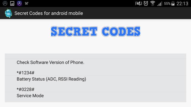 Secret codes for android