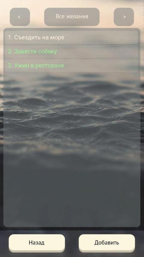Вы можете создавать, сохранять и редактировать список 100 желаний. Проверять желания на актуальность. Список всегда будет у вас под рукой.