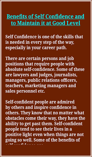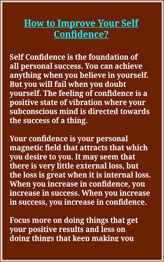 Self-confidence also brings about more happiness. Typically, when you are confident in your abilities you are happier due to your successes. Also, when you are feeling better about your capabilities, the more energized and motivated you are to take action and achieve your goals. This is the app to encourage and motivate you to be self confident and to maintain it at any challenging situation.
