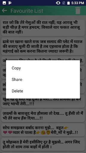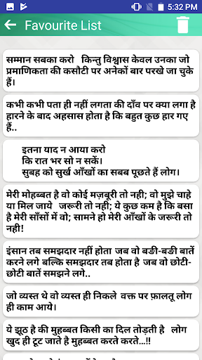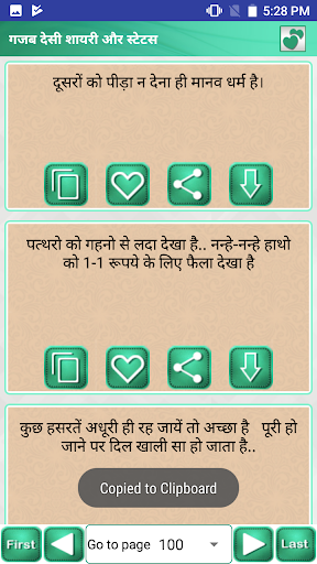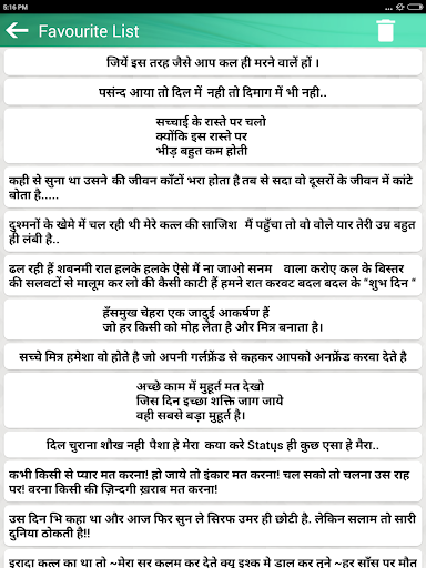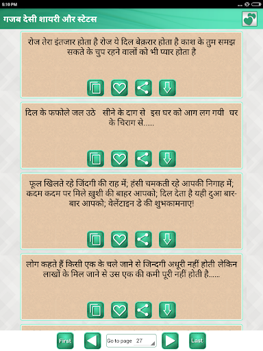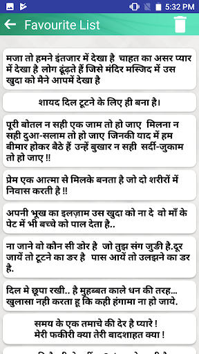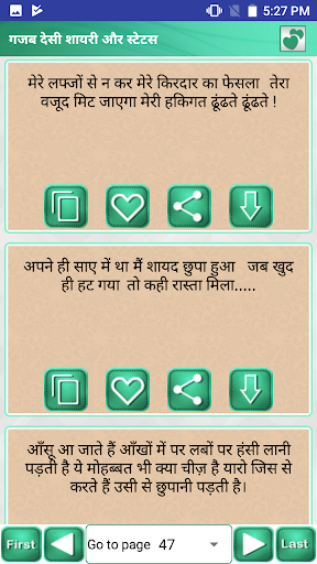 This is a free android app containg collection of hindi shayari and status messages. It has become a requirement to keep changing the status messages on social media on short intervals. People express their grief of love and happiness more on social networking sites these days. Many people with broken hearts feel better by changing their status messages.