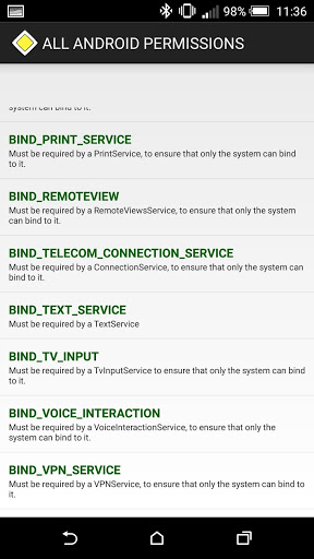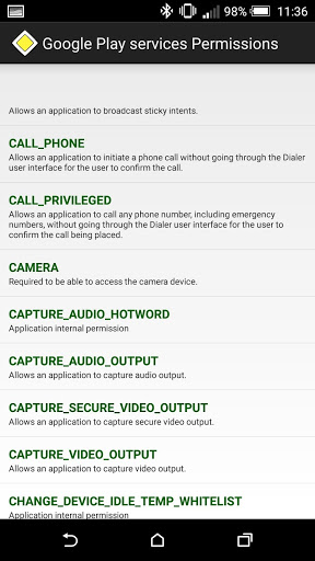 • USP: List all known Android permissions (currently - 162) with description