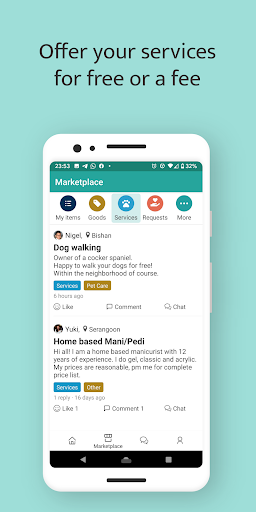 GoodHood.SG is a FREE app to allow verified neighbours to connect with each other to chat, offer/request help, give/sell items, and offer/list your services.