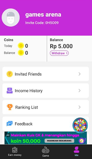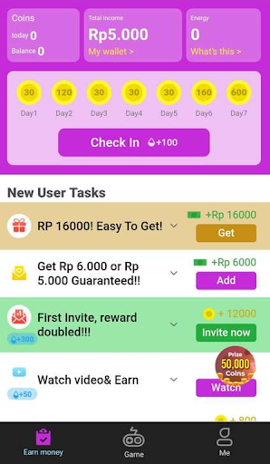 Make money by completing tasks, daily check in, playing games, inviting friends. Really easy tasks to make money in the app.
