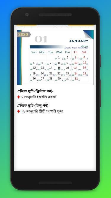 Calendar 2020 bangla English Arbi