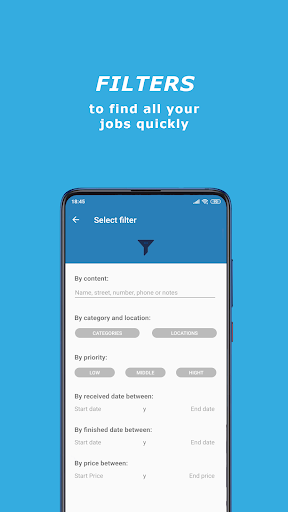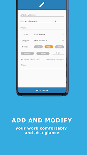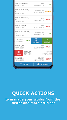 With Work Manager you can manage the incidences of your work in a comfortable, efficient and simple way. Add new jobs or incidents, manage them and delete them.