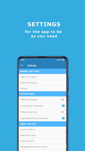 Work Manager is still a baby in the world of applications, so do not hesitate to give us 5 stars on Google Play and leave us a comment on what we can improve to make the app better and better.