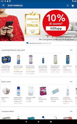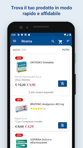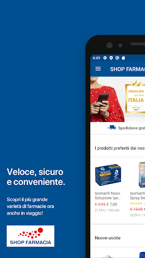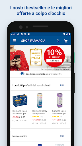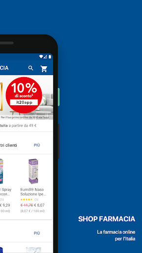 Grazie all’App di SHOP FARMACIA IT puoi effettuare i tuoi acquisti su dispositivi mobili e accedere alla nostra ampia scelta di prodotti e farmaci da banco. Con l’App di SHOP FARMACIA, lo shopping è sempre a portata di mano. Basta aprire l’applicazione sul tuo smartphone Android e, con pochi click, potrai ordinare in tutta sicurezza e ricevere l’ordine direttamente a casa tua.