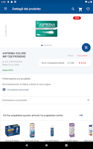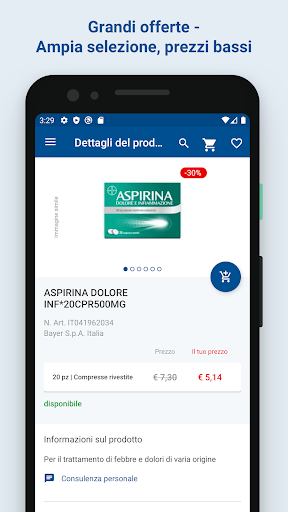 Il nostro vasto assortimento comprende le categorie: farmaci da banco, bambino e mamma, cosmetici & igiene, erboristeria & omeopatia come anche veterinaria. In qualità di farmacia online, oltre ai prezzi migliori, ti offriamo la migliore consulenza possibile. Il nostro staff specializzato saprà fornirti una consulenza professionale in merito ai prodotti e soddisferà ogni tua curiosità sulle modalità di consegna.
