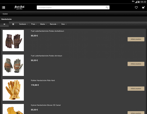 Non importa se escavatore, Bobber , Cafe Racer, Chopper o Scrambler e se BMW, Harley, Honda, Triumph, Indian, Moto Guzzi o Vittoria. Ogni motociclista, che imposta il valore su vestiti di alta qualità e di bell'aspetto, trova il suo prodotto preferito nell'app.
