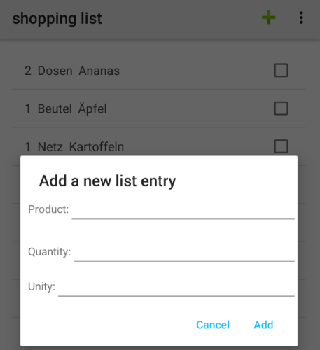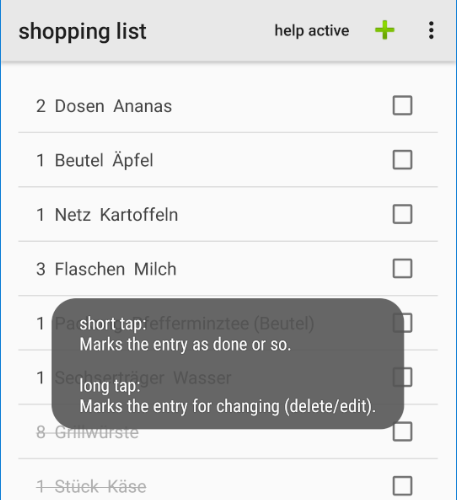A single shopping list is managed. The entries are clear and easy to enter. They are automatically sorted by name.
