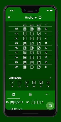 Whether in the (online) casino in Las Vegas, Macau, Hong Kong, USA or Portugal, the Sic Bo Dashboard is your constant companion on your smartphone. Simply enter your Sic Bo rolls from the casino into the app and use the numerous analysis options. Alternatively, you can simulate the birdcage by randomly generating the next roll of the three dice.