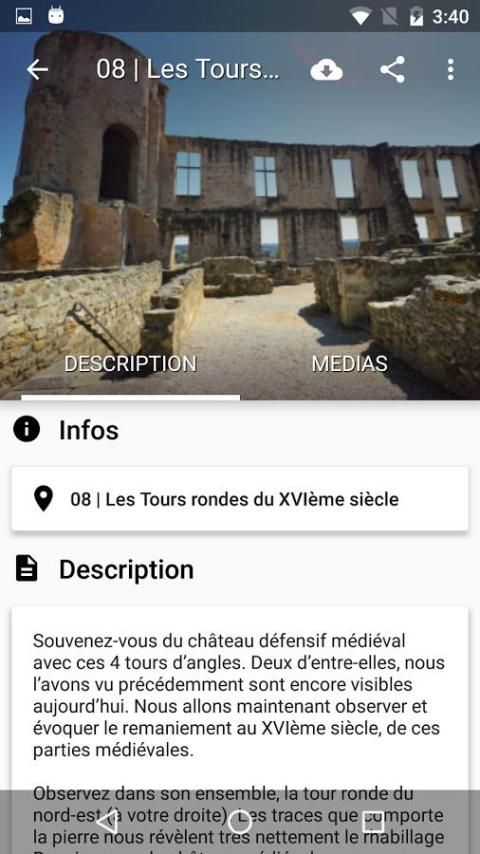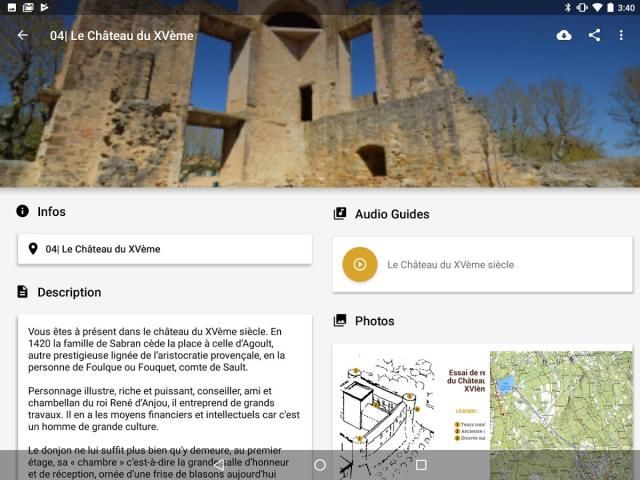For the first time, the Château de la Tour d'Aigues unveils its secrets. Triumphal gate to the massive tower, the Chapel to the terrace, this app invites you to enrich your visit with audio commentary, photos (before / after) or archives tracing 500 years of intimate story of these places. Geolocation and map allow you to set you in the Castle, not to miss any of it and have access to practical information.