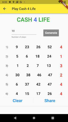 This app will generate random lottery numbers for the most popular lotteries like Powerball, Mega Millions, Cash 4 Life, etc