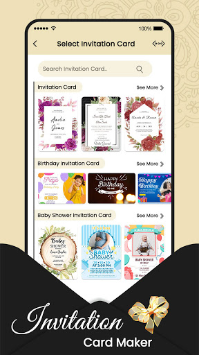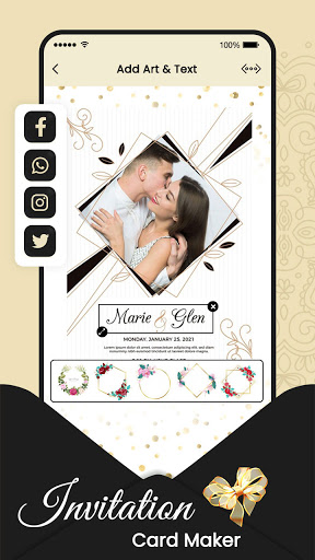 - Save your Invitation Cards and share on any social networking platform directly from the app.