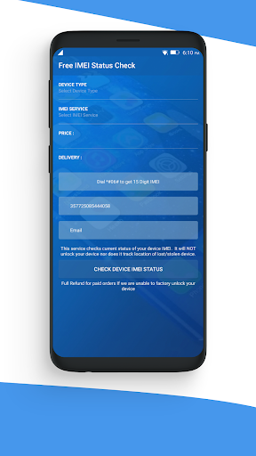 Free Mobile IMEI Status Check comes with a clean and neat design and the interface is so user-friendly that you’ll get the whole idea after browsing through different menus for the first time. IMEI Unlocker and Check IMEI are the 2 main features of this free device ID checker app and you just need to specify the device type, IMEI service, your device’s IMEI and leave the rest to the app. After a few minutes you’ll receive a thorough GSX report and IMEI analyze in your email or within the app.
