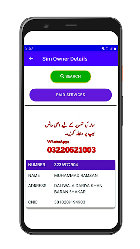 sim owner details will be very useful to user for finding number details,cnic information, cnic picture,and all number on cnic