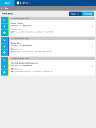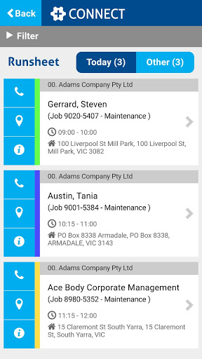 simPRO Connect is the field extension of simPRO Service and Enterprise. Staff in the field retrieve and update job times, materials, details, and even take payments on site in real time, enabling seamless data communication with the office.