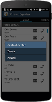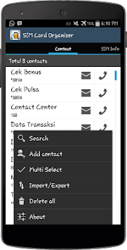 SIM Card Organizer is a great app that reads your SIM Card and give you many helpful information. It also help you to manage contacts in your SIM Card. You can view all your contacts stored on SIM Card, create a new contacts (store to SIM card), modify a contact or delete contact(s).