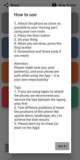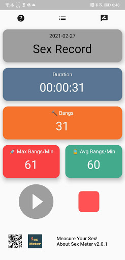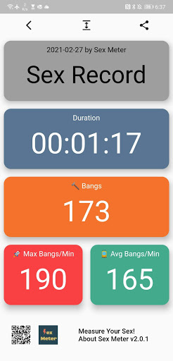 Have you ever wondered how many bangs/knocks are there in your sex? What's the max speed of bangs/knocks per minute? What's the average speed of bangs per minute? How long is your sex? Sex Meter can help you measure them!