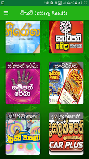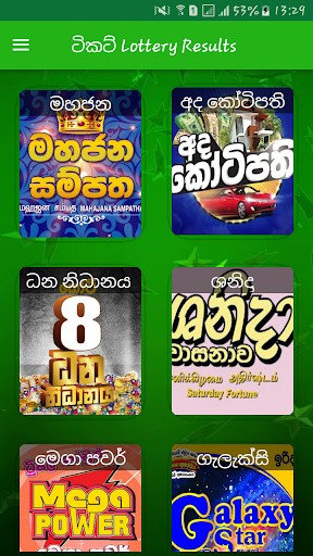 Ada Kotipathi, Saturday Fortune, Galaxy Star, Niyatha Jaya, Lagna Wasana, Super Ball, Kotipathi Shanida, Development Fortune, Dasa Lakshapathi Car Plus, Jayoda