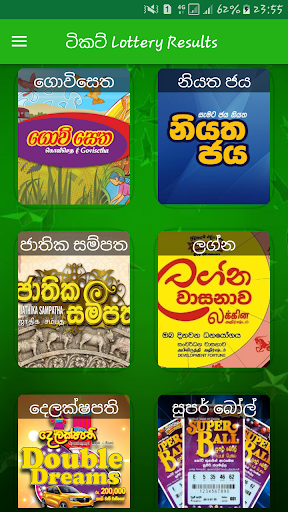 Dhana Nidhanaya, Mega Power, Mahajana Sampatha, Govisetha, Jathika Sampatha, Delakshapathi Double Dreams, Neeroga, Sampath Rekha, Supiri Vasana, Vasana Sampatha, Sevana, Airport Super Draw, Dollar Fortune