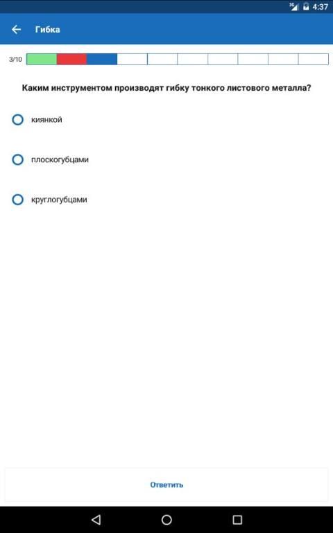 All material is divided into 16 chapters. Each chapter is made for self-test of 10 questions.