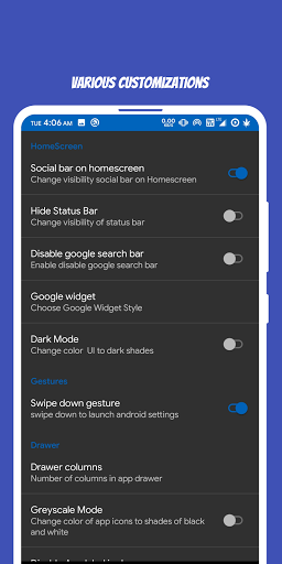 - A-Z classified launcher app drawer, it is easy to find apps
