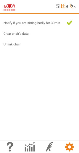 This application allows you to connect with a chair with sensor system and will show you how you usually sit. Depending on your characteristic postures, you will be advised a series of exercises to reduce as much as possible the consequences of sitting for a long time.