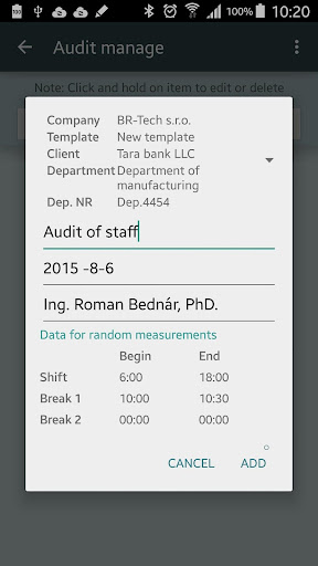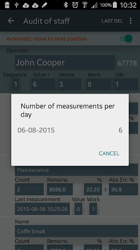 7. Dynamic calculation of the number of measurements required for each object and activity of audit based on selected parameters of Z-Value (2.3 to 98.128%), and the chosen measurement error (eg, ± 2%).