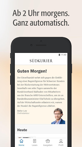 Mit der Digitalen Zeitung (ehemals ePaper) lesen Sie die mehrfach ausgezeichnete Qualität des SÜDKURIER auf Ihrem Android-Smartphone oder -Tablet. Die Digitale Zeitung entspricht 1:1 unserer gedruckten Ausgabe – ergänzt um viele nützliche digitale Funktionen. Wählen Sie einfach Ihre Lokalausgabe und profitieren Sie von den Vorteilen.