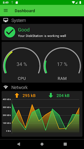 - detailed information about your Synology NAS with up to date CPU and RAM usage