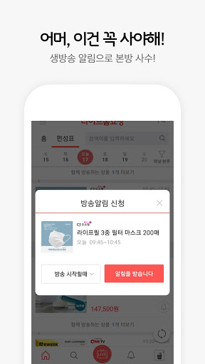 - 미리 선택한 생방송 시간을 알려주는 생방송 알림서비스로 생방송 혜택 놓치지 마세요.