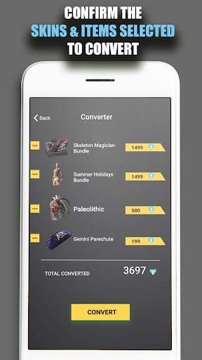 Once you have selected your combo of skins or items, you can convert to diamonds. This conversion is very practical and will help you better understand the cost of the desired skin or accessories and better manage your budget.