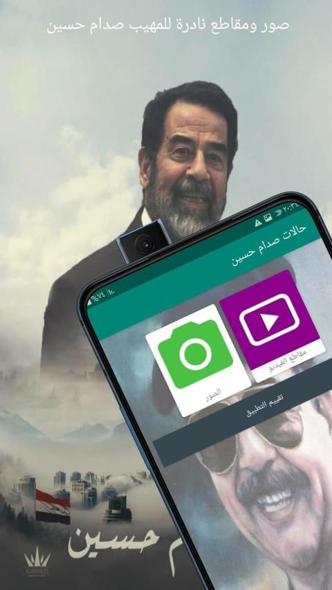 تطبيق يعرض صور وحالات واتس اب للرئيس العراقي الراحل صدام حسين مع امكانية المشاركة