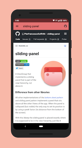 With sliding-panel instead, the bottom sheet is placed exactly where it is supposed to be in the view hierarchy, just like it would be in a vertical LinearLayout. It doesn't sit above other Views.