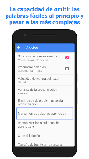 - Doğru çeviri seçeneğini seçerken 5 kez , kelime öğrenildiği kabul edilir ve daha fazla gösterilmez. Bu yapılandırmayı değiştirebilirsiniz.