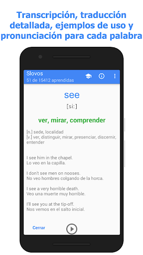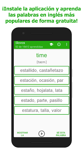 Slovos uygulaması ile İngilizce kelimeleri öğrenmek çok kolaydır. İngilizce öğrenmeye karar verirseniz, ilk önce dilbilgisi ve diğer kuralları hızlı bir şekilde öğrenmek için İngilizce olarak iyi bir kelimeye sahip olmalısınız; Ve işbirlikçileri anlamak ve kolayca konuşmanın sonucu olarak. Uygulama İngilizce'de 15.000 temel kelime içerir. Öğrenme en çok kullanılan kelimelerle İngilizce olarak başlar. Sınıflandırma sırasında, çeşitli konuların materyallerinden oluşan modern İngilizce ve Amerikan dilleri sözlükleri kullanılmıştır.