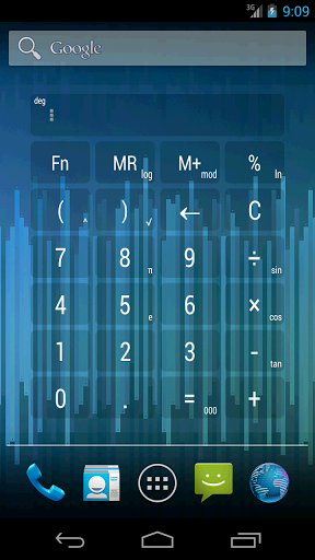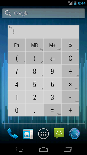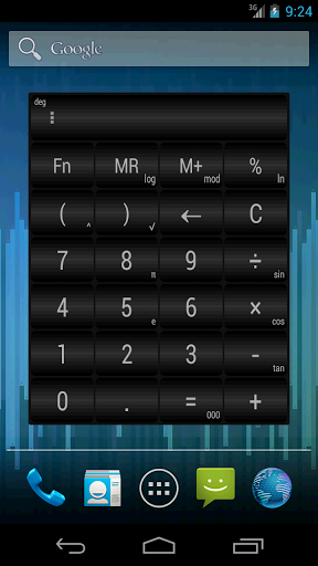 calculator Widget* 21 motifs* no ads* free* lockscreen widget features(Android 4.2)* history stores the last 30 results* resizeable widget (Android 3.1 and later)* changing fonts size* setting precision the expressionIF YOU LIKE THIS APP PLEASE RATE IT WITH 5 STARS.IT MOTIVATES US TO FURTHER IMPROVE THE APP AND WORK ON NEW INNOVATIVE FEATURES.THANK YOU IN ADVANCECALCULATOR WIDGET used to :- subtraction- addition- multiplication- division- parenthesis- division - percentage - square root - log logarithm- mod remainder of division- ln natural logarithm is the logarithm to the base e - power- sin- cos- tan- memory copy paste, you can copy and paste for example from SMS- parenthesis- vibration- pi constant- e constantINTERFACE :- 10 motifs (holo dark and light, purple, green, standard, black transparent, blue transparent, grey transparent, white, sky blue)- history (stores the last 30 results)- changing fonts size- setting precision the expression- actions in the history menu (delete, copy equation, copy expression, copy result)- lockscreen widget (Android 4.2)- resizeable widget (Android 3.1 and later)- option show extra bar (Fn, MR, M+, %)- option show subscripts- option show superscripts (it shows the current result)- option vibrationNOTE-If the calculator no longer responds to the buttons, remove the widget from the homescreen and put it again into homescreen.-This is a homescreen widget THUS IT IS NOT meant for INSTALL ON SD CARD according to google android.-It is a Widget! It is NOT shown in your application launcher.KEYWORDSholo dark, holo light, purple, green, standard, black transparent, blue transparent, grey transparent, white, sky blue homescreencalculatorpi constant calc widget parenthesis bracket layouts themes widget TO THE POWER computer settings percentage holo theme dark lightsinus cosinus tangens tg remainder of division lock screenhistory delete, copy equation, copy expression, copy result lockscreen widget (Android 4.2)resizeable widget (Android 3.1 and later) option show extra bar option show subscripts option show superscripts (it shows the current result) new Fn button