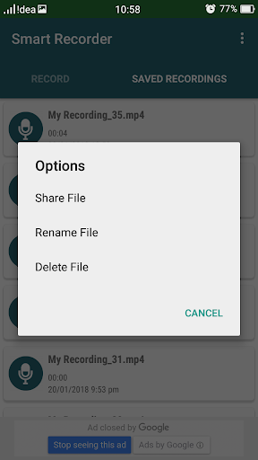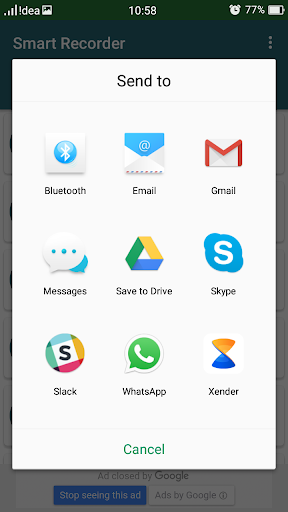 - send/share a recording via email, whatsapp, dropbox, etc.