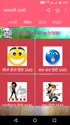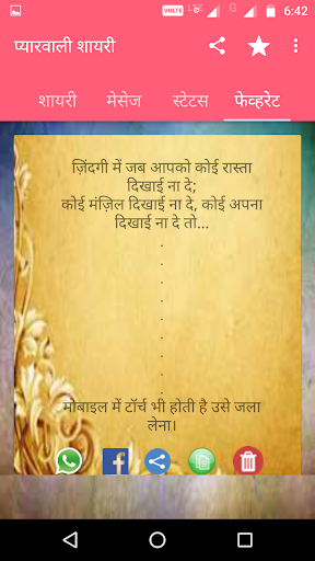 Hindi Shayari Collection - Hindi Shayari app which contains the great collection of Hindi Shayari, SMS, Jokes and Status.