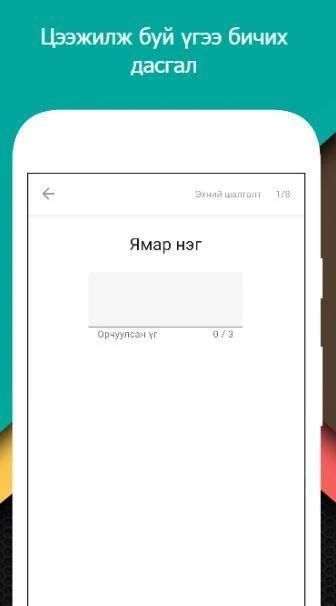 Та хэдэн үг мэддэг, нэмж сурсан, ямар үг сурах гэх мэт үгтэй холбоотой асуудлаа уг апп-д даатга.