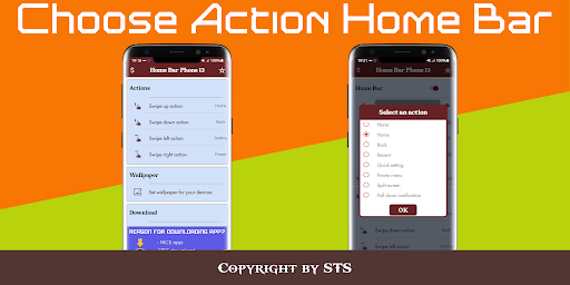 This new home bar button is very simple. Just swipe up, left or right to launch a selected action.