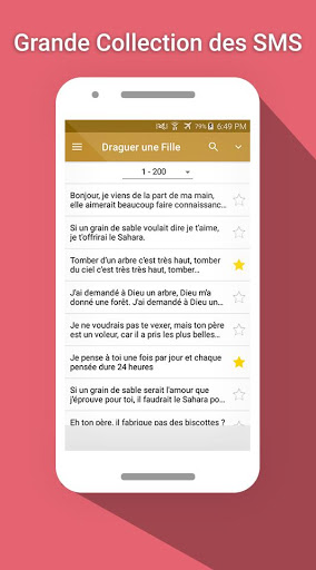 Dès maintenant, draguer en envoyant un petit message de drague en français très doux à votre amour, ce fait est devenu très facile avec cette application,