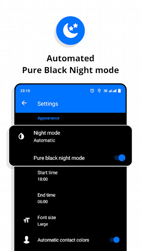 Switch to Dark Mode: 🌙 Enhance your messaging experience with customized Pure Black Night Mode, offering a comfortable and visually appealing interface during a specific time.