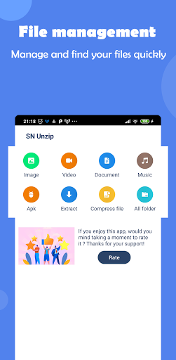 Our mobile RAR file reader will help you compress and read the RAR extension quickly. You can compress files and share the zipped files with anyone you want quickly and conveniently.
