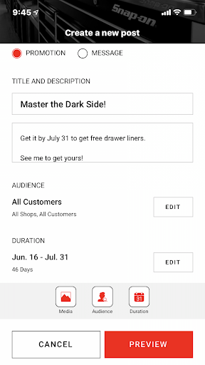 Now you can view Snap-on promotions right in Chrome Express! View and edit the promotions to your liking and then forward onto your customers quickly and easily in the Connect section of the app!